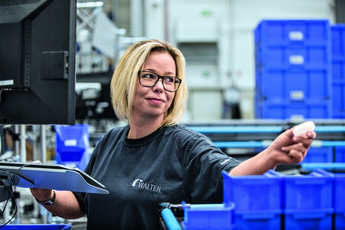 EINE GROSSE, SEHR HELLE, sehr saubere Produktionshalle. Der oft im Maschinenbau anzutreffende Geruch nach warmem Metall, er fehlt hier völlig. Vorne links an einem großen Bearbeitungszentrum stehen zwei junge Männer in den obligatorischen grauen WALTER-Shirts, schauen in den Maschineninnenraum und diskutieren miteinander. Hinten rechts startet ein etwas älterer Mitarbeiter den Prüfzyklus an einer Messmaschine.