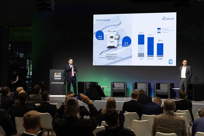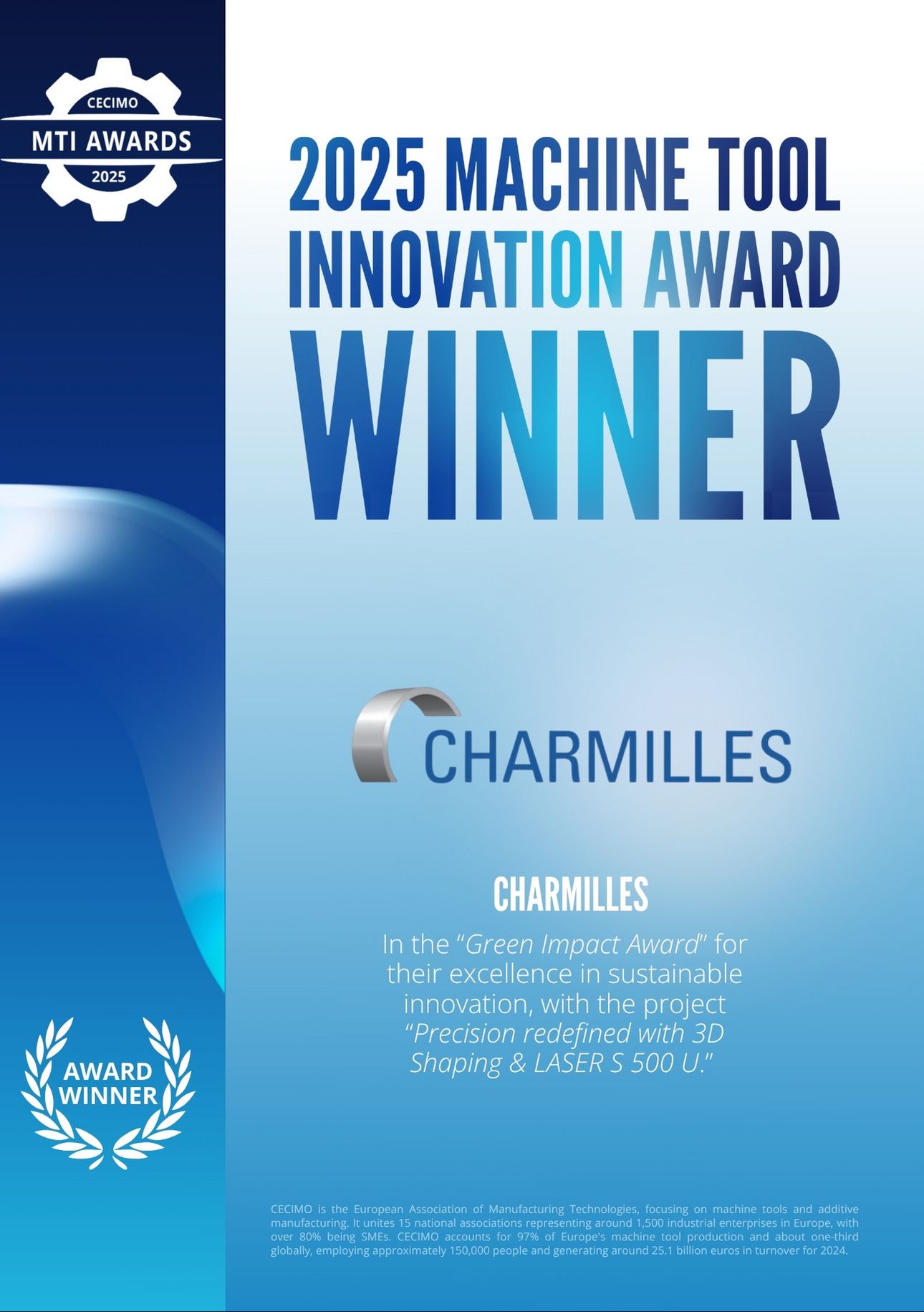 Ein weiterer Grund zur Freude: CHARMILLES, eine Marke der Division UNITED MACHINING, wurde für ihren bahnbrechenden Ansatz zur nachhaltigen Hochpräzisionsfertigung mit dem Green Impact Award ausgezeichnet. Das Team unter der Leitung von Philippe Langel, Head of CHARMILLES, und Adrien Rodrigues, Business Support Manager, nahm die Auszeichnung mit großem Stolz und Ehre entgegen. Das prämierte Projekt „Precision Redefined with 3DShaping & LASER S 500 U“ kombiniert ein einzigartiges Bearbeitungsverfahren, 3DShaping, mit einer ultrapräzisen und hochdynamischen Mikrobearbeitungsplattform, der LASER S 500 U. Gemeinsam ermöglichen sie die Herstellung komplexer Mikrogeometrien mit unerreichter Genauigkeit und Qualität – selbst bei Merkmalen, die scharfe Kanten und perfekt vertikale Wände erfordern. Dieser Ansatz reduziert den Energieverbrauch drastisch, eliminiert Verbrauchsmaterialien und vereinfacht den gesamten Arbeitsablauf. Er setzt neue Maßstäbe in der nachhaltigen Fertigung, indem er den ökologischen Fußabdruck verringert, die Stückkosten senkt und die Durchlaufzeiten verkürzt. „Nachhaltigkeit ist kein Trend, sondern eine Verantwortung“, betonte Philippe Langel bei der Preisverleihung. „Unsere Entwicklungen zeigen, dass Präzision und Ökologie Hand in Hand gehen können – und dass High-End-Technologie einen realen Beitrag zu einer ressourcenschonenden Industrie leisten kann.“