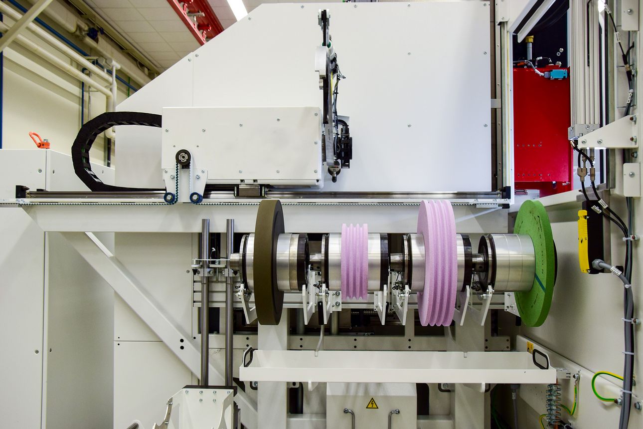 Le changeur offre à l'utilisateur de nombreux avantages supplémentaires : il permet le chargement de plusieurs outils du même type, de sorte que les meules usées peuvent être remplacées rapidement et automatiquement. En outre, le changeur d'outils permet un fonctionnement sans personnel, même pour les pièces complexes qui nécessitent des meules au profil différent. Comme il peut être chargé pendant le processus, les temps de préparation sont encore plus réduits. En même temps, le changeur d'outils améliore la manipulation générale de la machine. Il est plus facile pour l'opérateur de charger le changeur avec de grandes roues que de monter ces roues directement dans la machine.